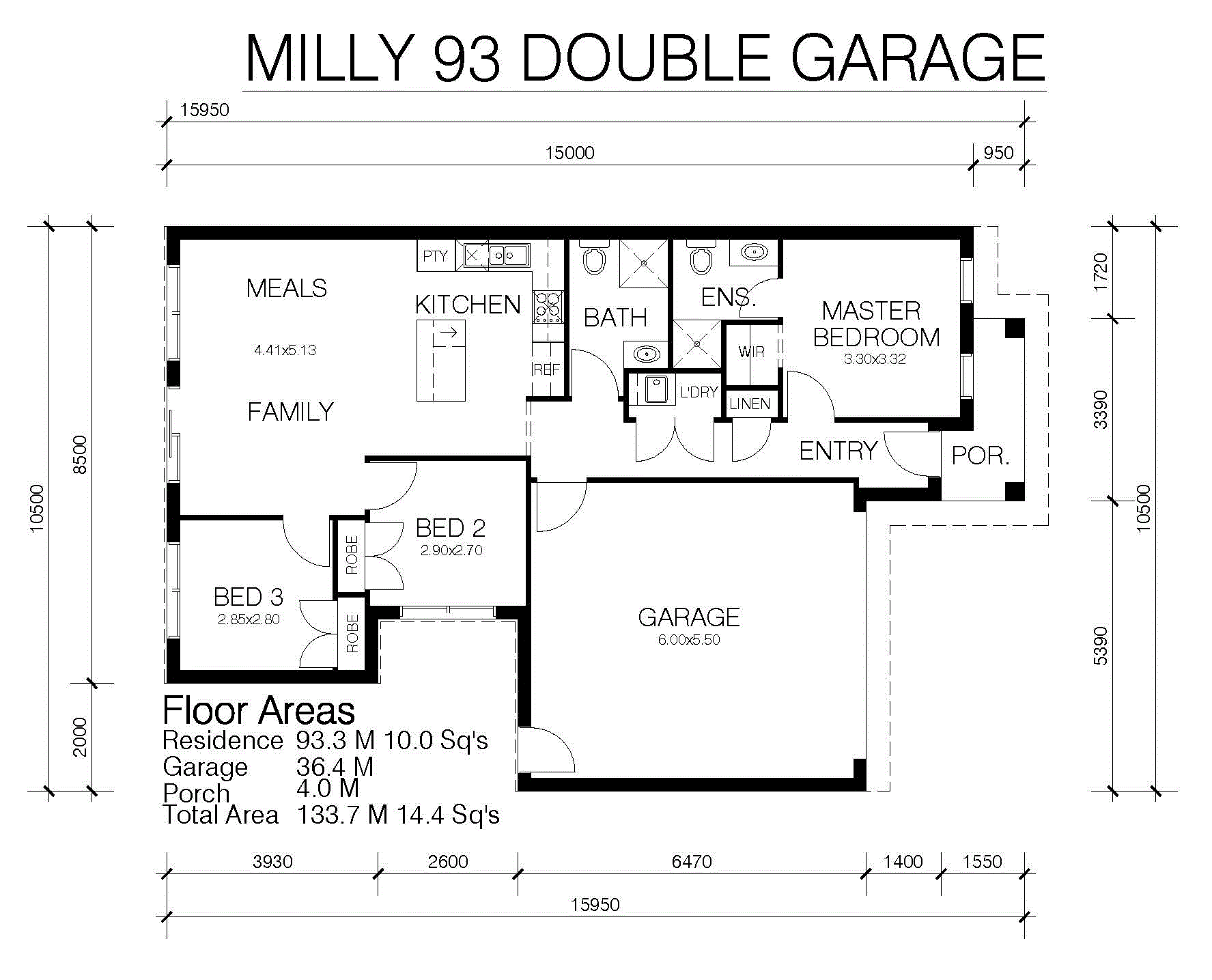 MILLY 93 DESIGN 3 BEDROOMS,2 BATHROOMS, DOUBLE GARAGE WITH 8.5 BLOCK FRONTAGE