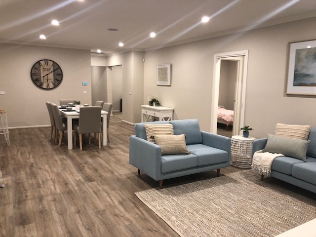 Laminated Flooring to Entry, Hallway, Kitchen, Family & Meals Areas